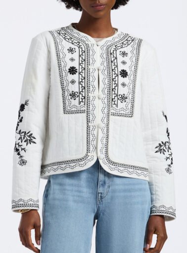 Add a touch of casual sophistication to your wardrobe with this quilted crop jacket Annalee. Featuring a unique wave-stitch pattern. this jacket combines warmth and lightweight comfort. making it perfect for transitional seasons. The zip-front closure and spacious front pockets offer both style and practicality. while the cropped design provides a flattering. contemporary silhouette. Ideal for layering over tees or sweaters. this jacket pairs effortlessly with high-waisted jeans or trousers for a relaxed yet polished look.