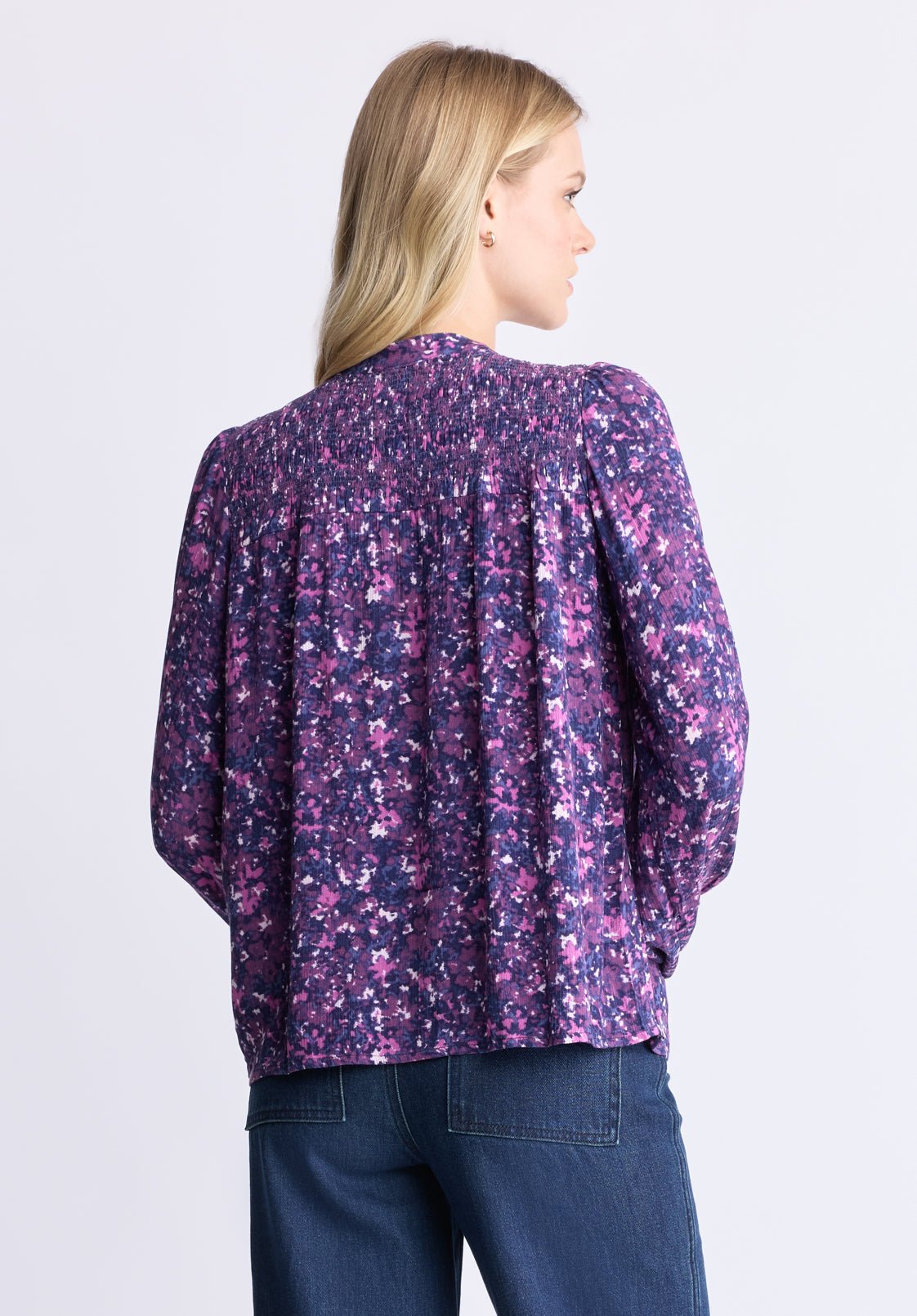 Zosia Women’s Floral Print Smocked Blouse. Purple – WT0130H