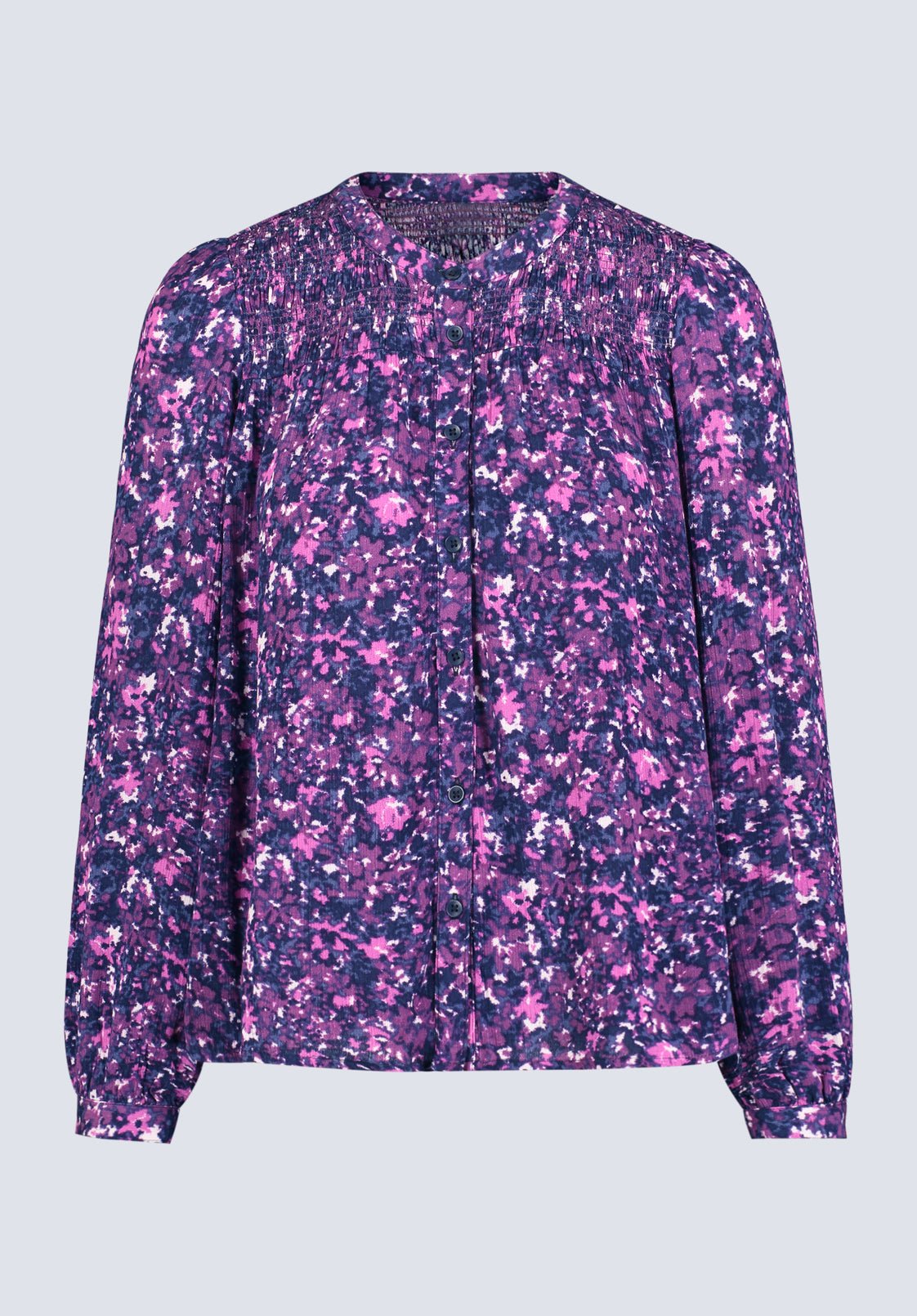 Bring a touch of romance to your everyday wardrobe with this floral print long-sleeve blouse Zosia. Designed with a soft. flowy silhouette and delicate floral pattern. this blouse is perfect for both work and casual occasions. The gathered yoke detailing adds subtle texture. while the button-front closure and billowy sleeves give it an effortlessly feminine vibe. Pair it with jeans for a laid-back look. or dress it up with tailored pants for a more polished ensemble.